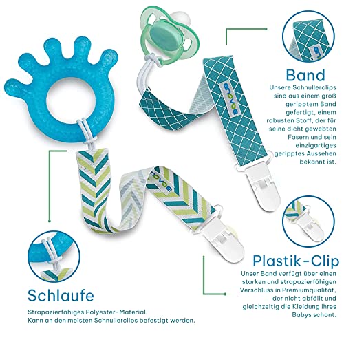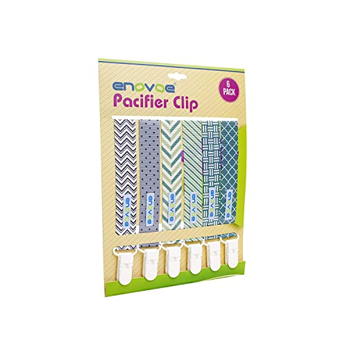 Enovoe Schnullerclip von, 6er Pack Schnullerclips, Stylischer Beissring Schnullerhalter für Baby Jungen und Mädchen