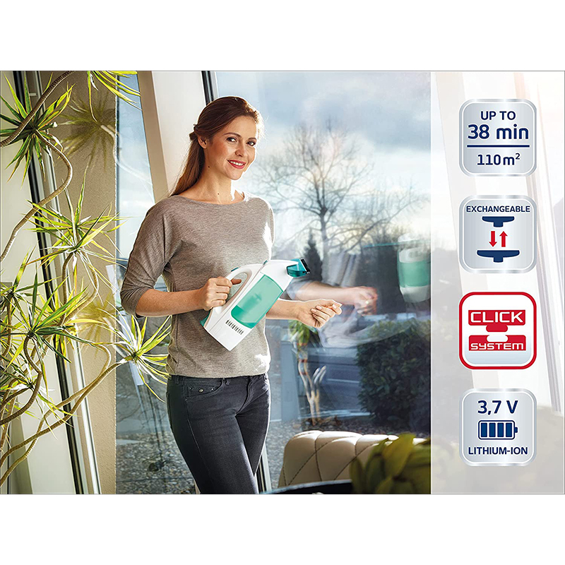 Dank dem Click System können mühelos hohe Fenster oder Wintergärten abgesaugt werden.